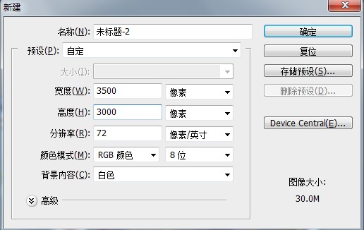 新建一个比原图大很多的文档,数值自定。