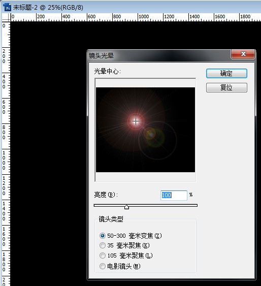 把刚才新建的文档填充黑色,然后选择滤镜---渲染---镜头光晕,数值如图: