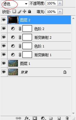 然后把镜头光晕的那个图层拖到要调色的那个文档里,图层混合模式改为“滤色”,然后放在图片的左上角,如图: