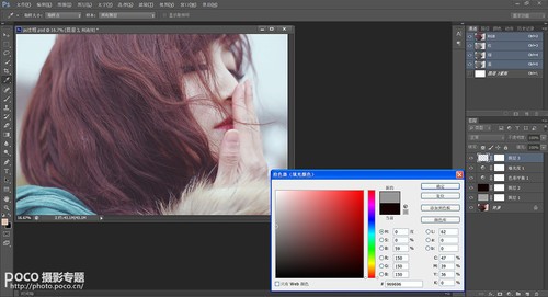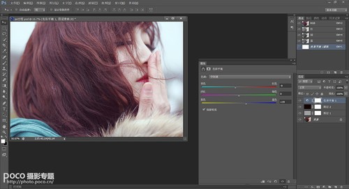 调整图片颜色,继续为人物增加冷色调。