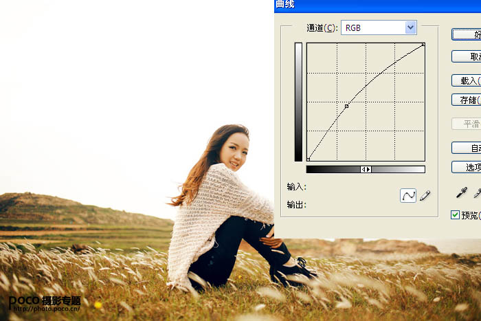 1、画面色彩有点沉重,我们利用曲线调整,使草地的层次呈现出来。 |