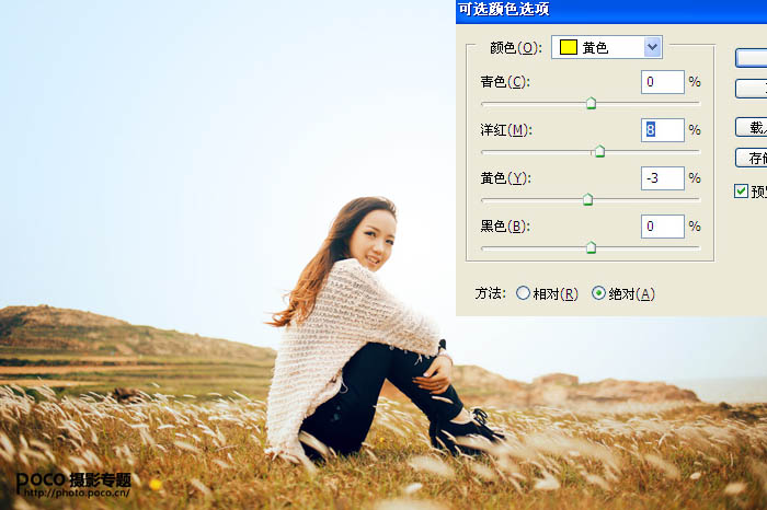 4、校色后润色,让画面不再偏黄,使整体色彩偏暖。 |