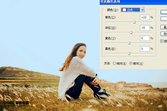 2、让天空变蓝,最简单的方法就是可选颜色,对白色进行调整。可选颜色的好处就是只对单一色彩调整,不会影响整体。 |