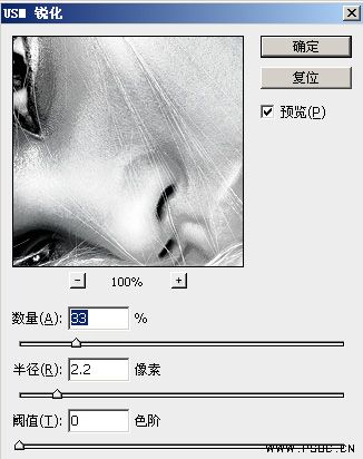 7. 滤镜>锐化>USB锐化,参数如下图所示: