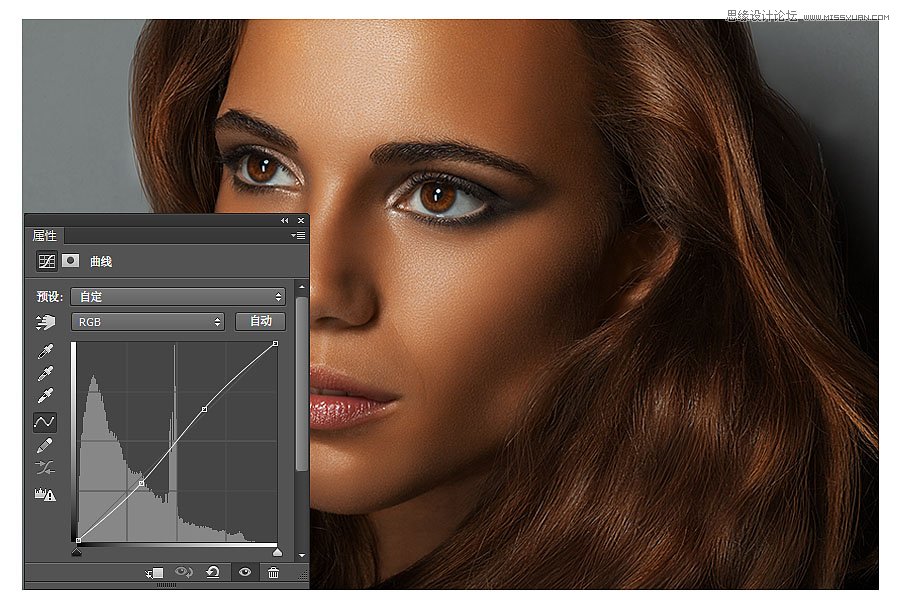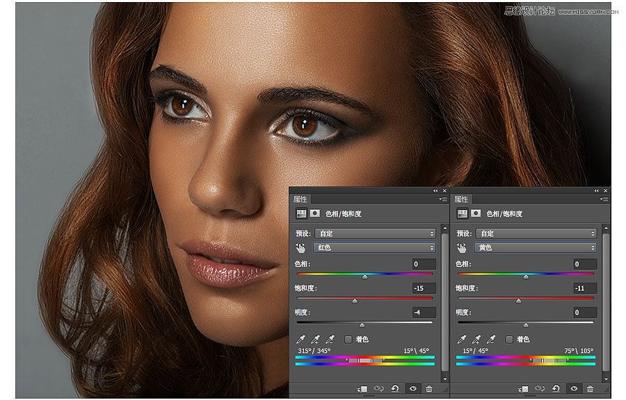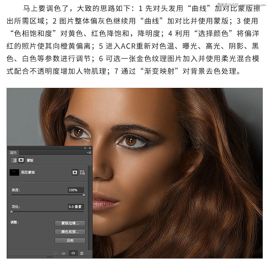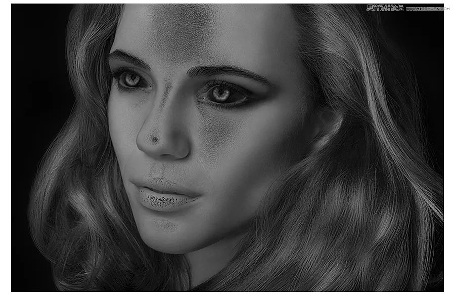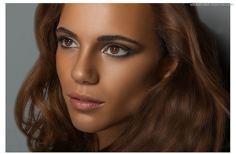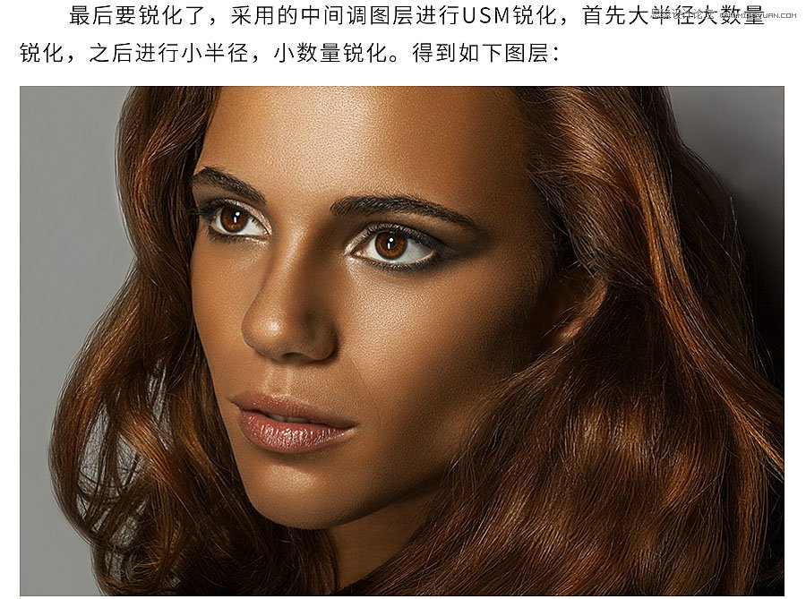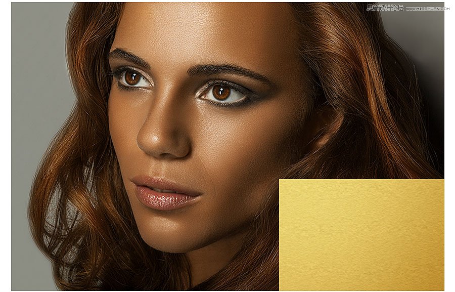 本篇PS教程主要分两个部分完成,先是给人像进行皮肤处理,主要是磨皮,过程中质感的保留处理非常好。其后是给人像添加古铜色的金属肤色。