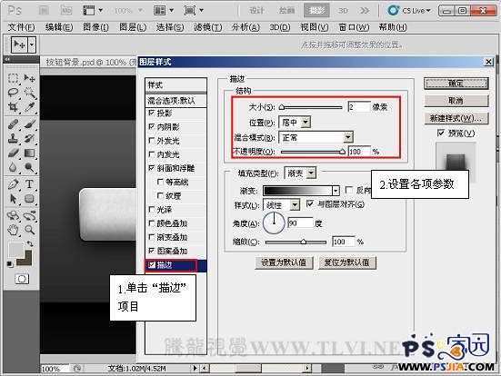 | 7、单击“描边”项目,并设置其各项参数。 |