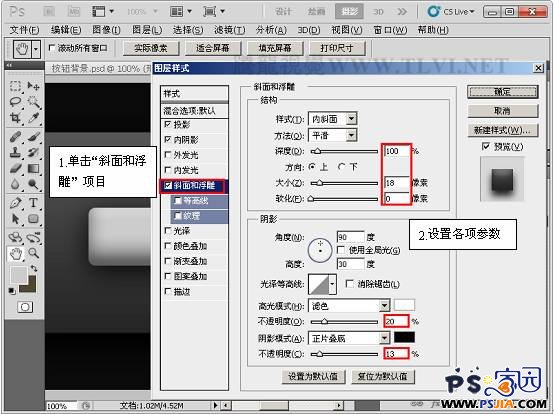 | 5、单击“斜面和浮雕”项目,并设置其各项参数。 |