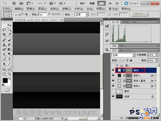 | 18、复制“形状 1”图层,得到“形状 1 副本 2”图层并命名为“高光”,并将其图层的图层样式删除。 |