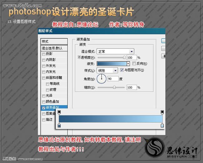 13、设置图层样式,选择渐变叠加,颜色设置如下图。