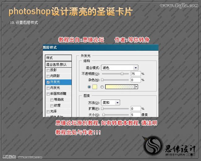 19、设置图层样式,选择外发光,参数设置如下图。