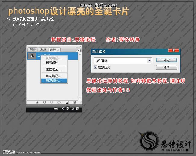 | 17、切换到路径面板,把前景色设置为白色,描边路径,如下图。 |