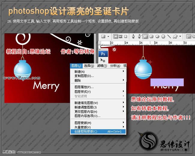26、使用文字工具,输入文字,再用矩形工具绘制一个矩形,设置颜色,再创建剪贴蒙版。
