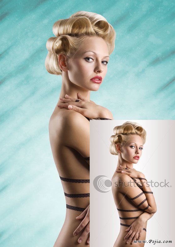 现在是时候把模特放进来了。你可以找到免费模特照片。就我而言,我下载了this beautiful model photo form Shutterstock。之后使用钢笔工具把模特从背景中分离出来,把她放在主画布中。