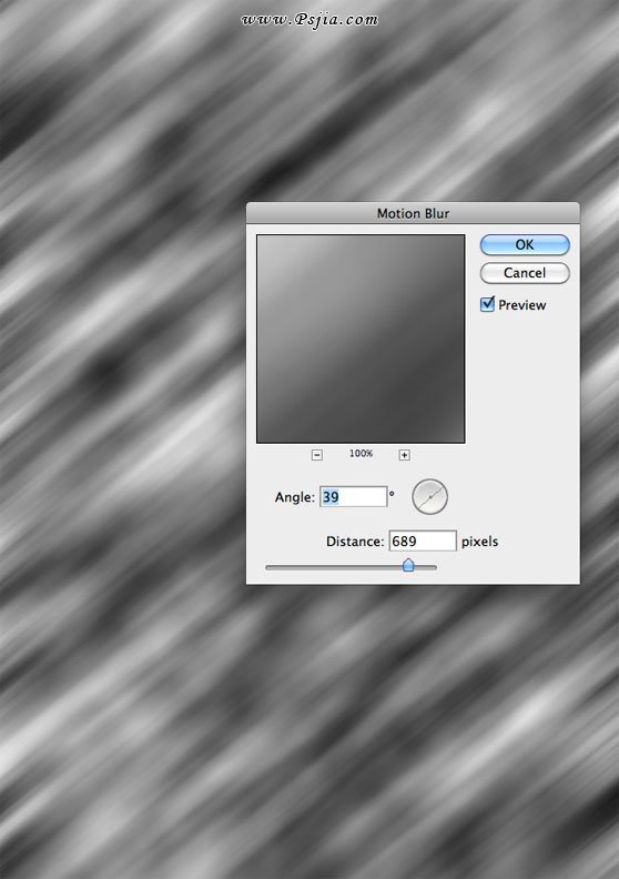 去滤镜>模糊>动感模糊,并输入以下值: