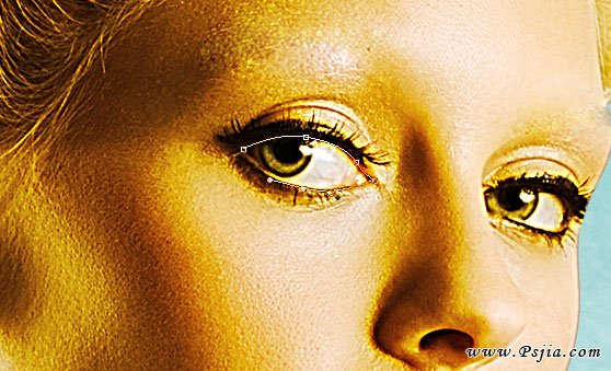 我现在要给模特添加一些细节,使她呈现玩偶效果。创建一个新层,并使用路径模式下的钢笔工具。在左眼上做路径: