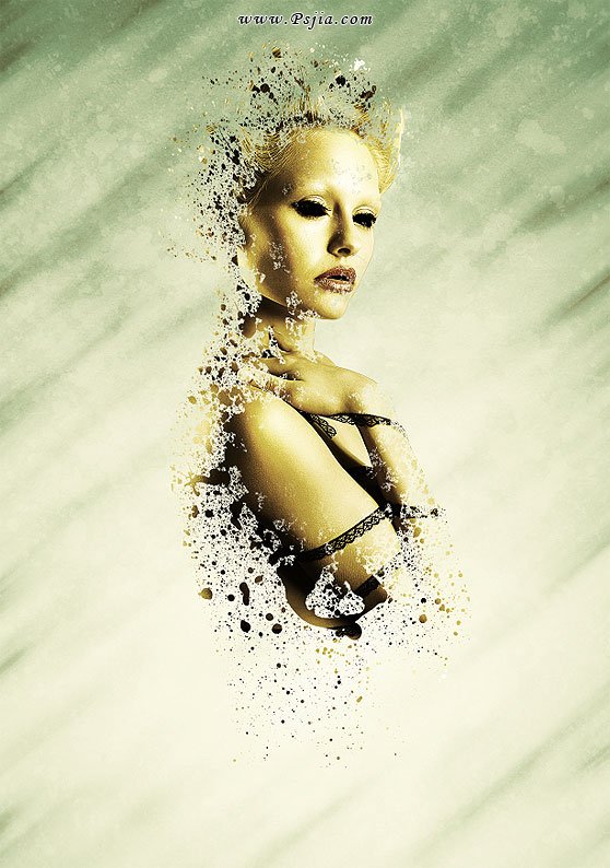 我们在蒙版上应用白色的笔刷(找笔刷的地方很多,此篇教程笔刷在这里下载)使模特可见。为了向大家展示这种技术,这里有使用3套不同的笔刷得到了3种不同的结果~