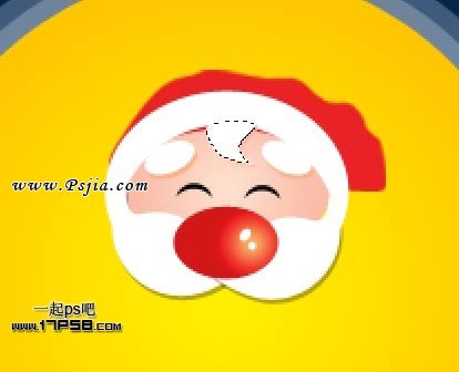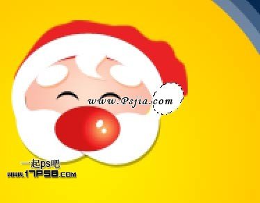 下面画圣诞老人的帽子,底部建新层,用钢笔画下图所示形状,填充红色。 建新层,自定义形状工具减法模式画2个白色椭圆。 建新层,用钢笔画出下图所
