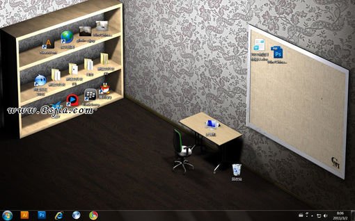先来看一下成品图在桌面的效果 成品图 原图 首先素材的准备,做欧式style需要的东西。 (1)欧式花纹壁纸 (2)木地板 副标题 打开ps,打开原图。 在这里我选择使用了咖啡色的