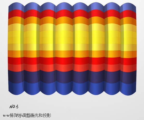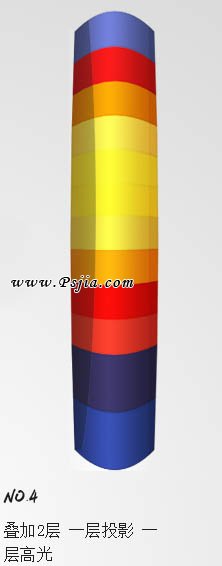 4、叠加2层,一层投影一层高光,效果如下图。 5、把做好的图形复制几层,按照下图所示排列。 6、将前面所有的东西转化为智能包,并放在一个方形画布