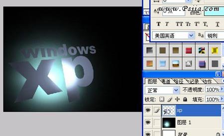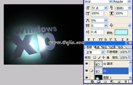 效果如下: 新建图层: 输出如下文字: 合并图层: 用透视变换一下 用画笔在亲背景层画出如下效果: 选择减淡工具,设置为高光,画出如下效果: 在文字图层,用减淡工具涂出高光
