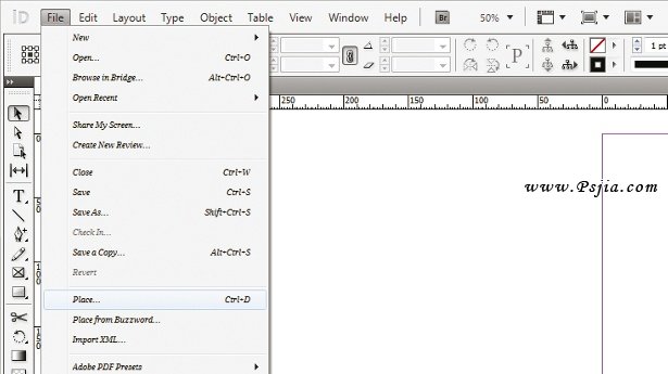 06 把图片置入Indesign (Ctrl/Cmd+D).随便放在画面上的任何一个地方。你不需要把图片嵌入ID文件(他们通过路径来连接的,确保不要修改原图片的路径),不过你也可以嵌入,会让ID文件有些臃肿。