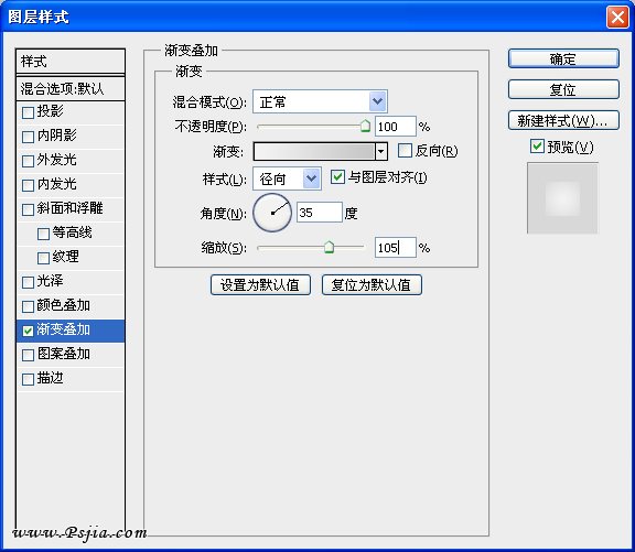为了不让白色背景看起来乏味,增加一个渐变叠加效果。渐变颜色为# f3f3f3到# c6c6c6。