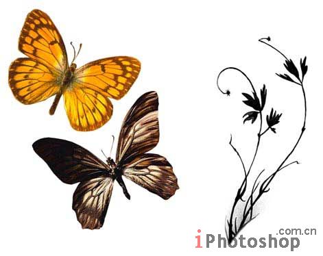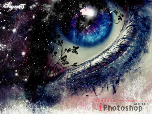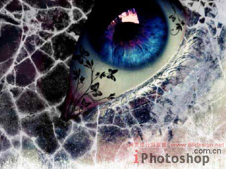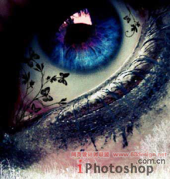 下面绘制几样我们自己的设计,放置到眼睛里面去。我使用的是一张蝴蝶的图片,使用多边形套索工具将蝴蝶从他原来的图片里面抠出来,粘贴到新层中。