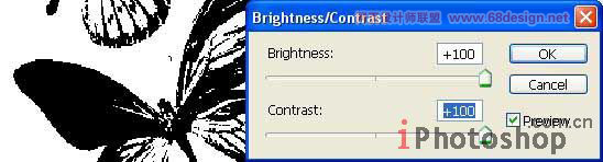 我们需要将蝴蝶的颜色去掉(点击图像-调整-饱和度ctrl+shift+u),然后增强图片的对比度同时将图片调亮(图像-调整-亮度/对比度)。