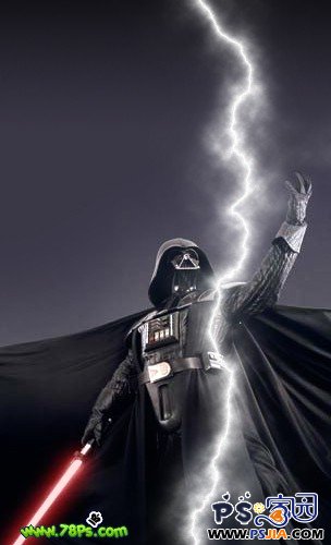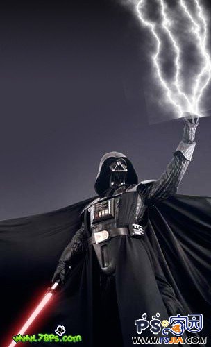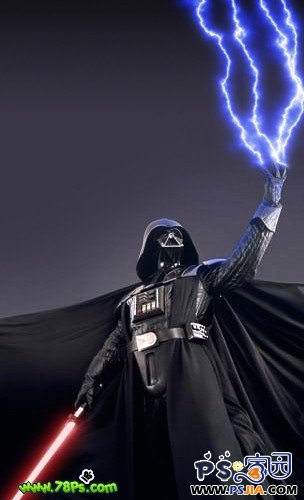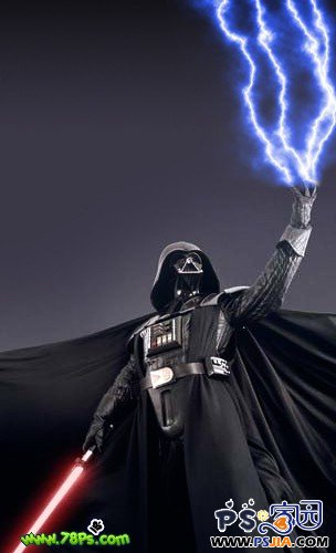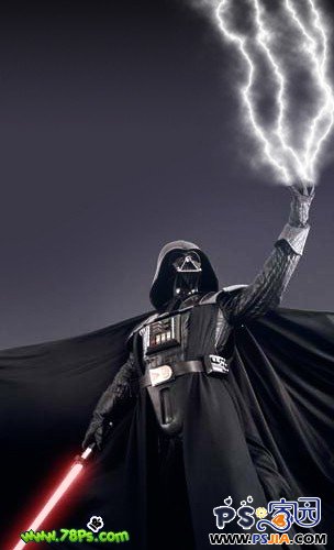 5、现在我们要添加闪电,打开星战的素材图,用移动工具把刚才制作的闪电拖进到素材图中。 |
