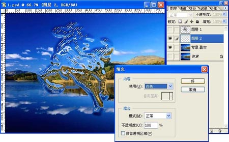 5、保留选区,回到图层面板,在背景副本图层上方新建图层2,在选区内填充白色。