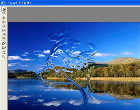 7、在背景副本图层上执行液化滤镜,调整合适大小的画笔作如图变形。(由水面往上推,过渡要自然,做成水被往上抽的效果。)液化完成后建立一张快照,将历史画笔定位在快照上。