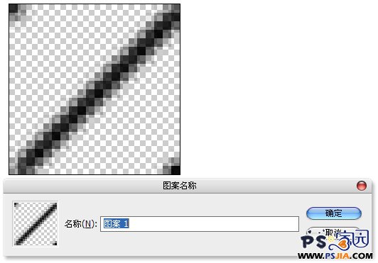 新建10像素×10像素文件的,“背景内容”为“透明”,画笔3像素,对角绘制一条直线,定义为图案。