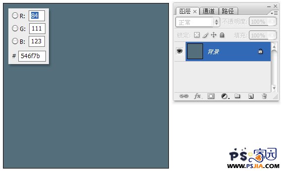 新建500像素×500像素文件,蓝灰色填充画布。