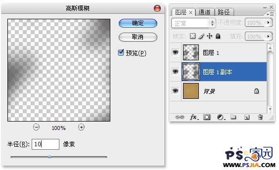 复制“图层1副本”,执行“高斯模糊”滤镜。