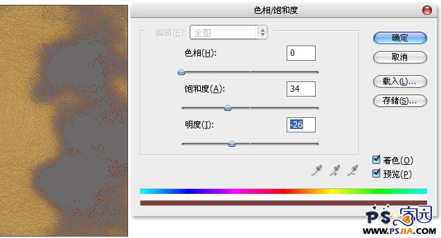 调整色相饱和度,把颜色调整为铁锈颜色。