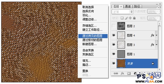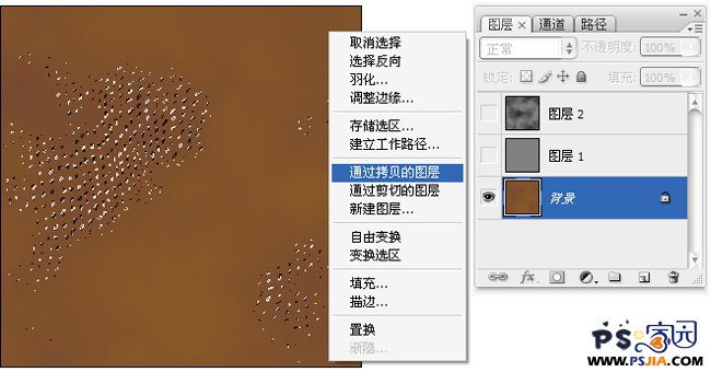 回到“背景”图层,执行“通过拷贝的图层”命令。