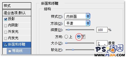 “粘贴图层样式”将“斜面与浮雕”中“方向”选项更改为“下”。