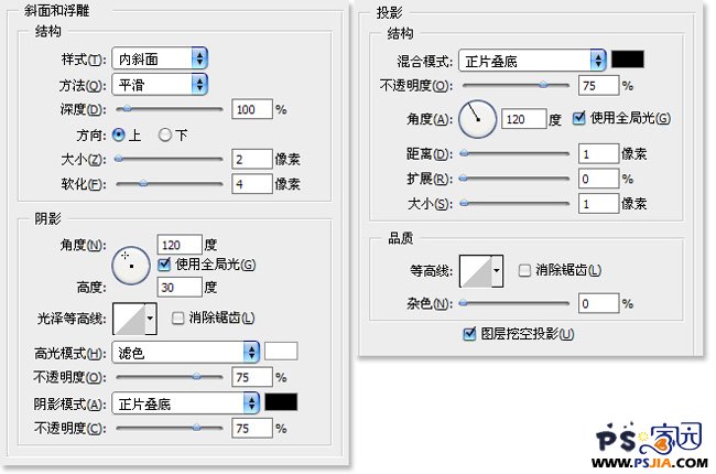 为两个拷贝到的图层添加“斜面与浮雕”和“投影”图层样式。