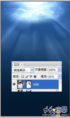 12:图层的填充设置为26%,并给光线图层添加一个图层蒙板,选择合适的笔刷,进行蒙板的绘制,将多余的光线擦掉。