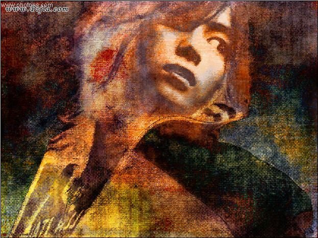 本教程介绍类似油画效果的处理方法。大致过程:先把图片去色后,用滤镜加上一些类似油画纹理,然后再用纹理素材及高光素材叠加做出自己喜好的颜色即可。