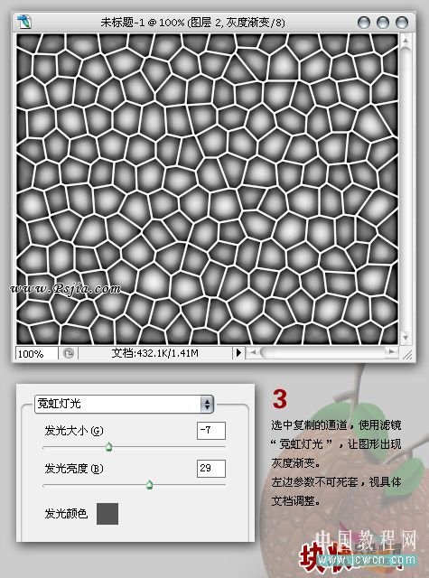 3、把通道复制一层,命名为灰度渐变,对复制的通道执行:滤镜 艺术效果 霓虹灯光,参数及效果如下图。操作目的让图形出现灰度渐变。 4、把当前通道