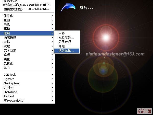 2、执行:滤镜 > 渲染 > 镜头光晕,适当设置好参数,大致效果如下图。