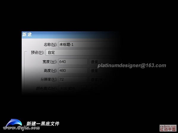 1、新建一个640 * 480像素的文档,背景填充黑色。
