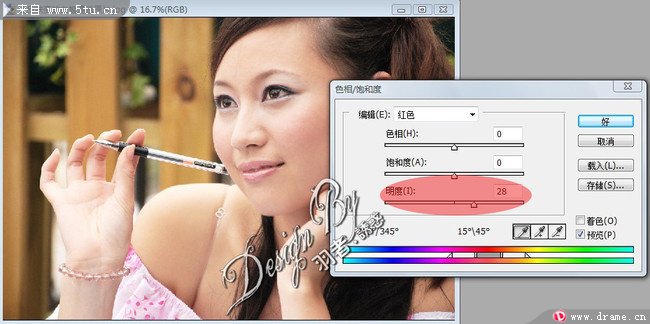 3、按Ctrl+U调整色相/饱和度,编纂--红色(0,0,28)