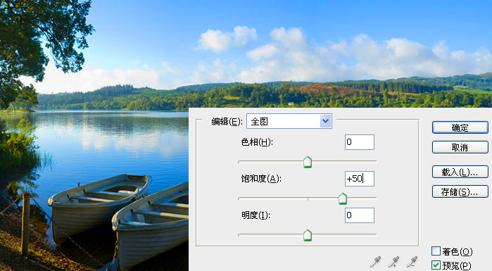 步骤 2、调整色相/饱和度(Ctrl + U)。