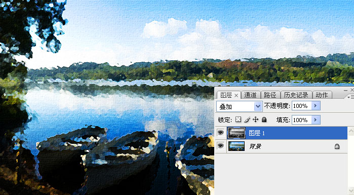 步骤1、选择风景素材。 步骤2、调整色相/饱和度(Ctrl+U)。 步骤4、完成步骤3的设置后,先不要点确定,在滤镜设置窗口右下角点击新建效果图层按钮。在滤镜选择框中选择艺术效果绘