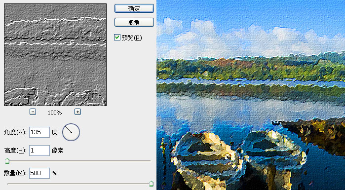 步骤 10、将浮雕层不透明度设为“40%”得到最终油画效果。