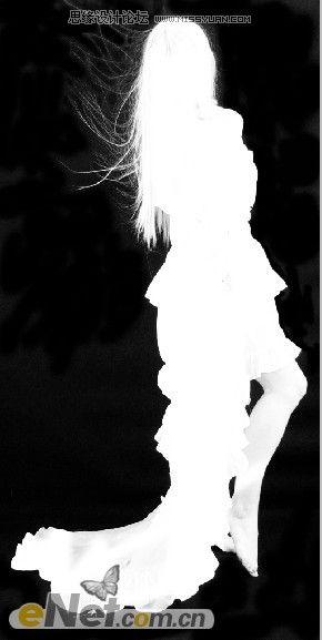 10.在用刚才的路径,重新转换为选区,然后在人物身体内部进行涂抹,将头部、腿部、脚部等位置显示出来,图层蒙版效果如图12所示。得到如图13所示效果,