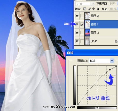 9、感觉婚纱有点不白。按Ctrl + M 曲线调之,不调也可以。