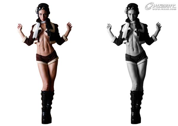 2、执行图像>调整>色相/饱和度,将中间的锚点拖向灰色区域,以使模特变为灰度。另一种更为简单的方法是按住CMD+SHIFT+U (PC机中的CTRL键通常与苹果机中CMD键用法一直)。 创建新的空白层,并将其置于底部。对它执行图层>新建填充涂层>纯色。调节模特照片的尺寸大小。 通过调整,我将照片略微缩小,以使它更适合作品。调整尺寸的快捷键为CMD+T 。(在调整尺寸的状态下,你不妨偶尔尝试按住shift、ctrl或cmd键,这可以得到不同的效果。) |